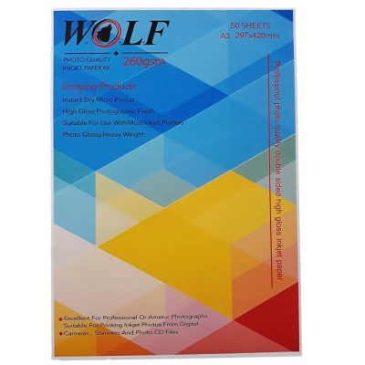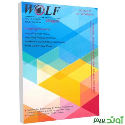 کاغذ دورو گلاسه براق 260گرم ولف سایز A3 بسته 50 عددی